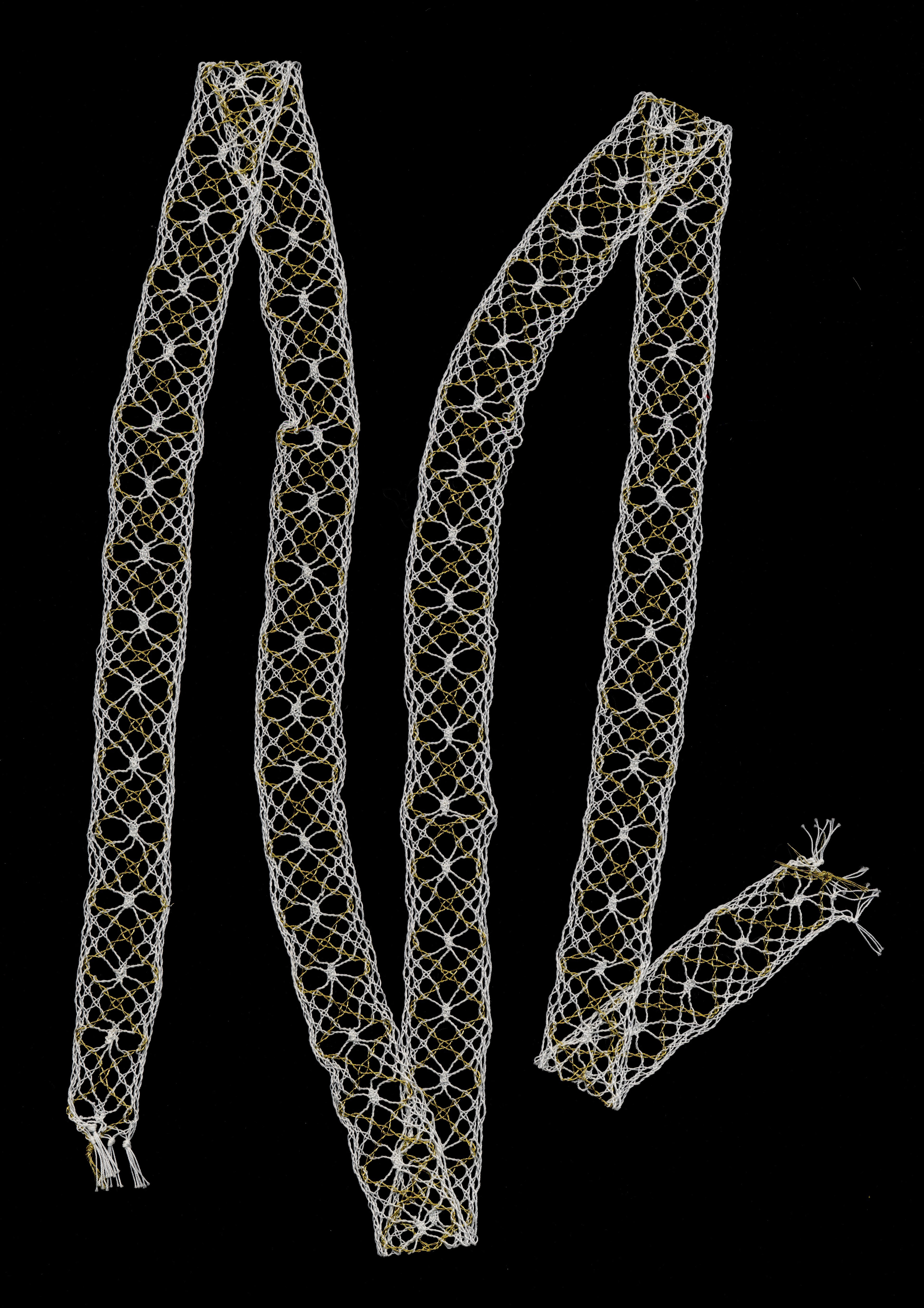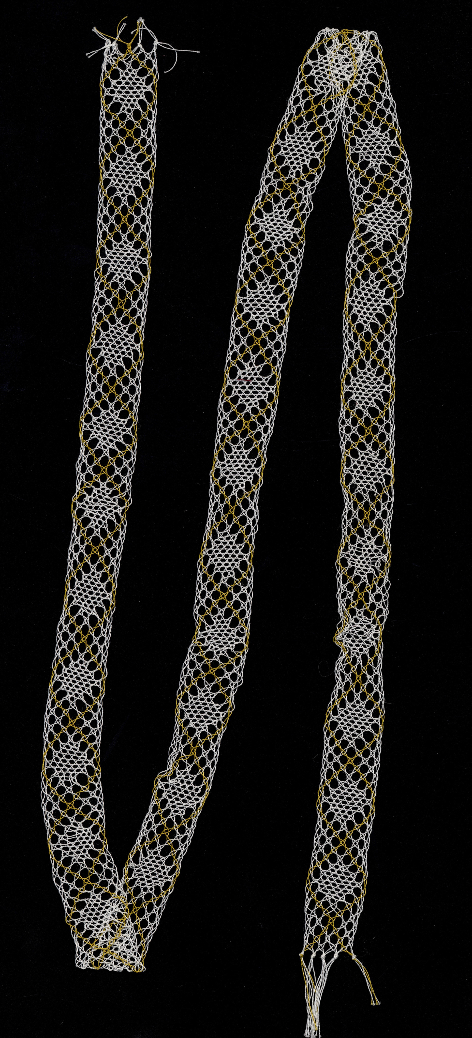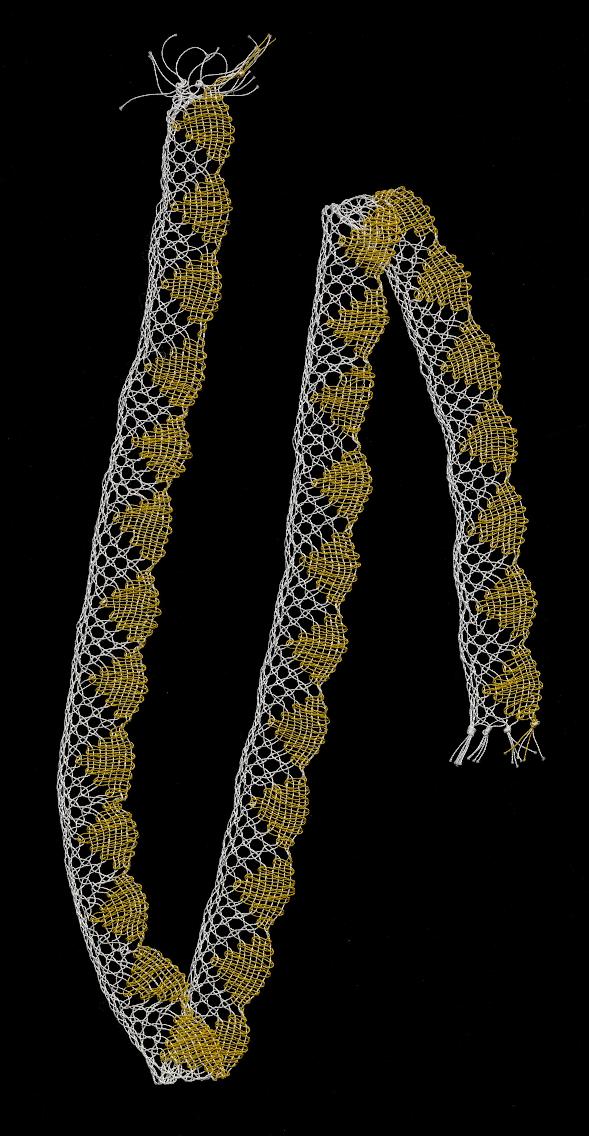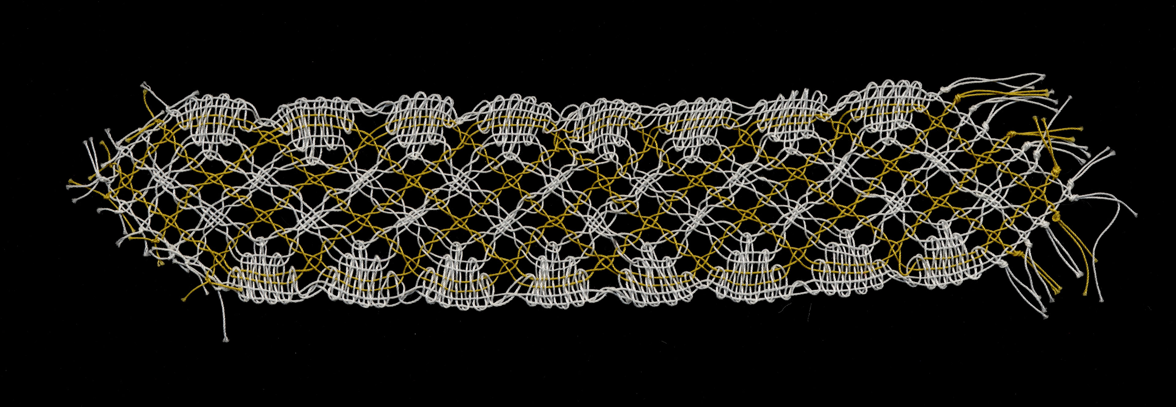 A mix of different types of bobbin lace, primarily torchon, with a little bit of braided laceĀ and buck's point.