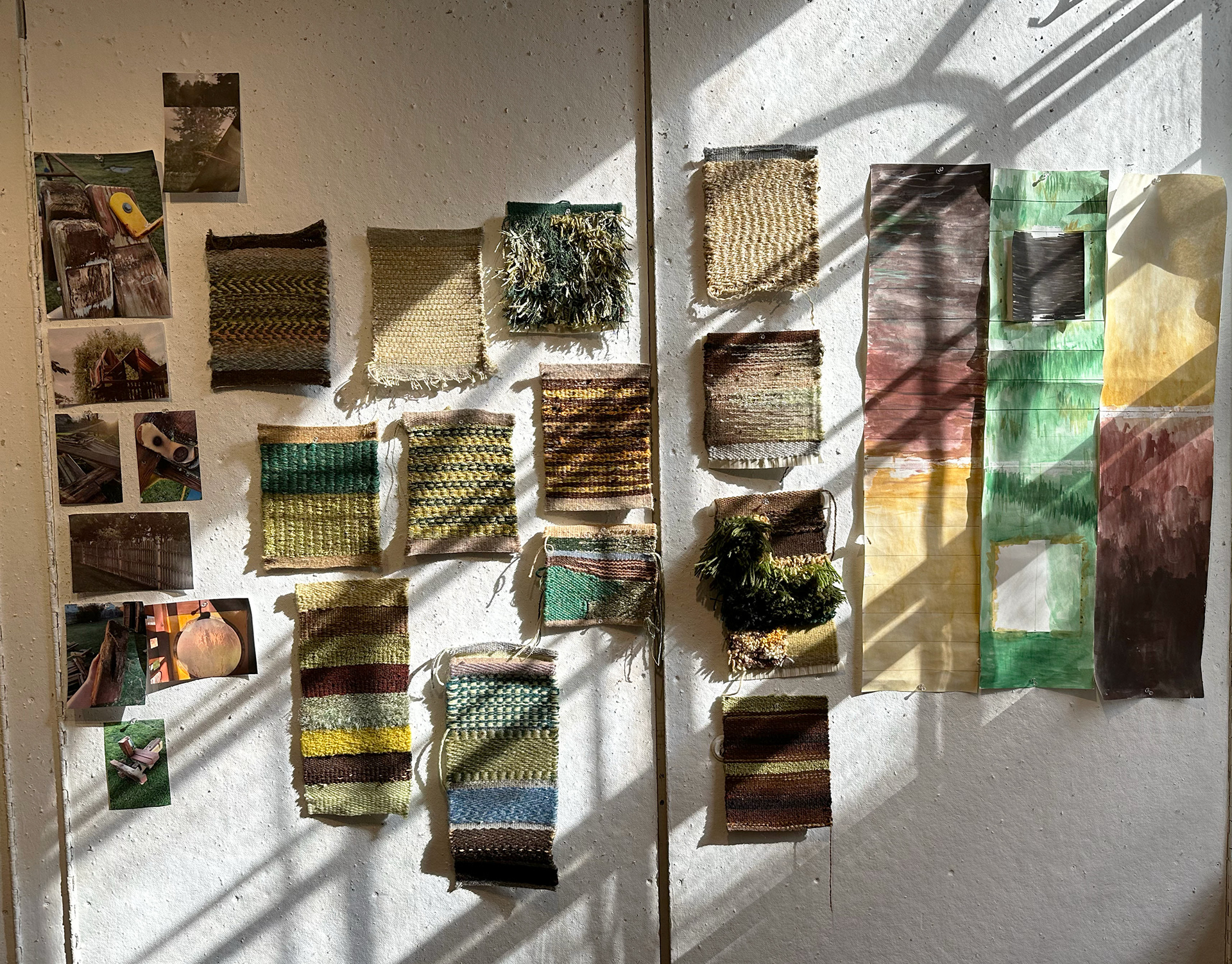 This swingset was in my backyard for over 20 years, legs slowly sinking into the ground, wood decaying, with the occasional layer of warm brown stain carefully reapplied. Due to its age and dangerous lack of structural integrity, my family got together to demolish it with a chainsaw. Over the course of this project and development of samples, I focused on the colors and textures of this structure, as well as its interaction with the yard around it through indents and shadows.